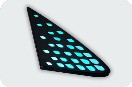 Hidden light-transmitting film applied to rear side windows with multiple light modes upon activation.